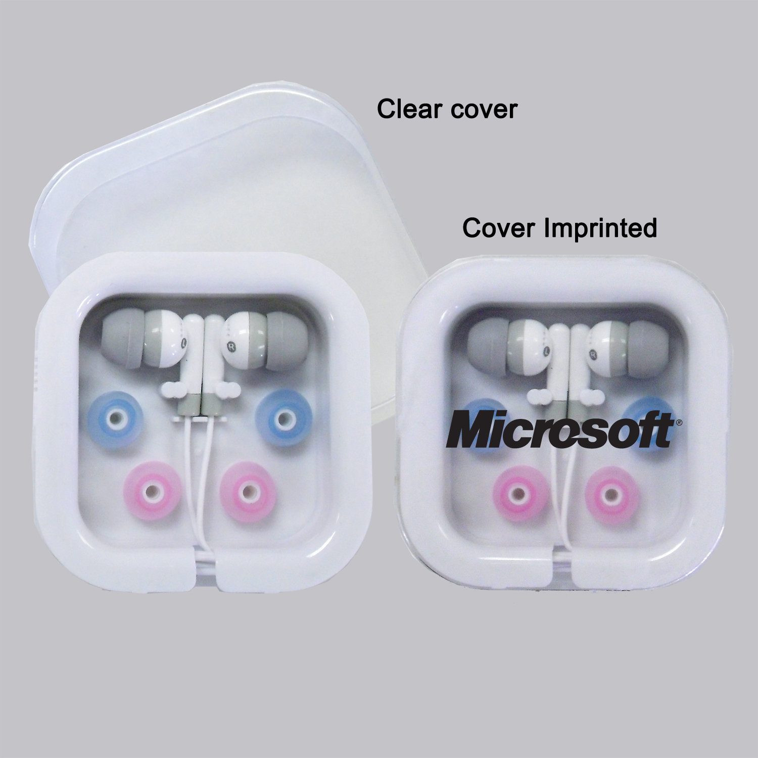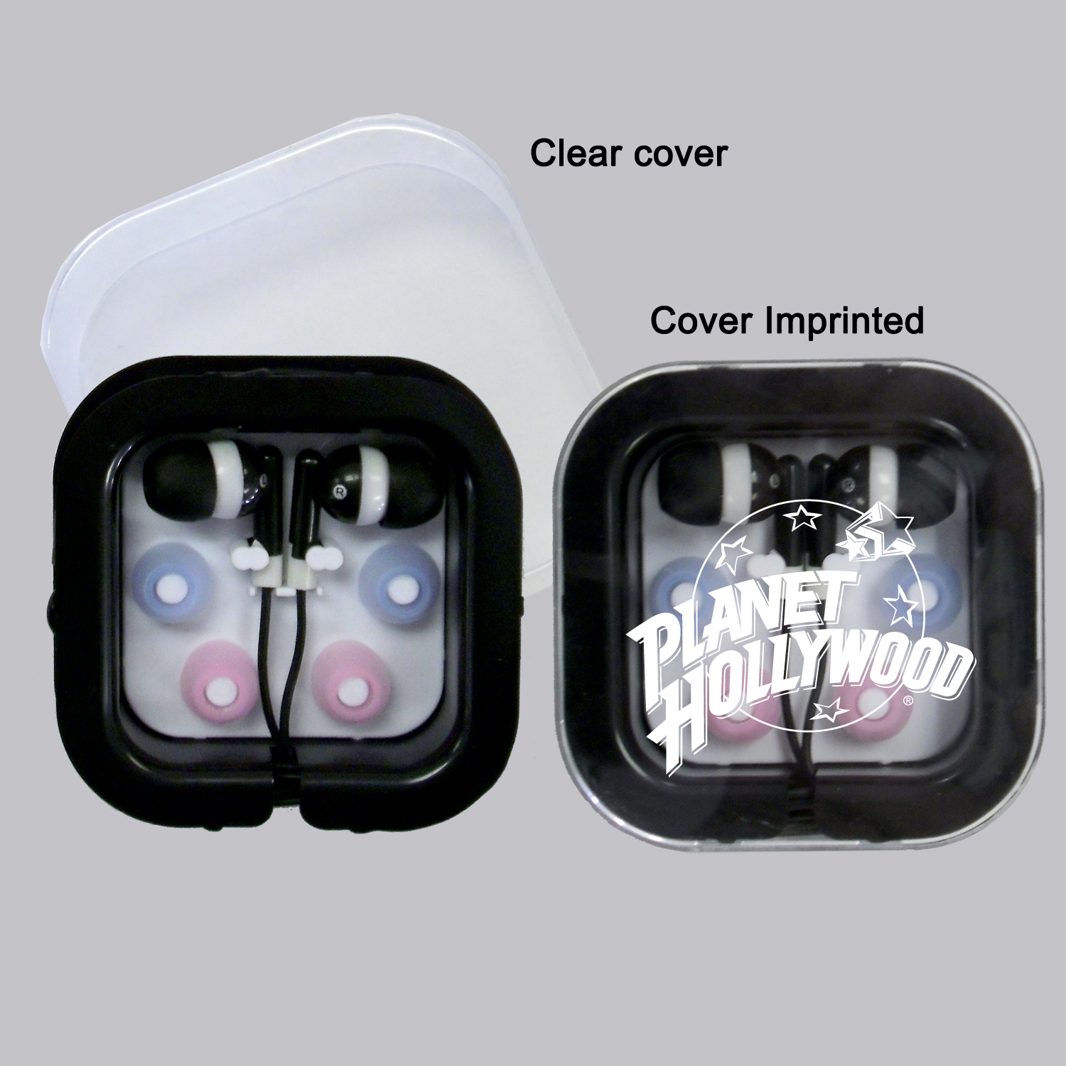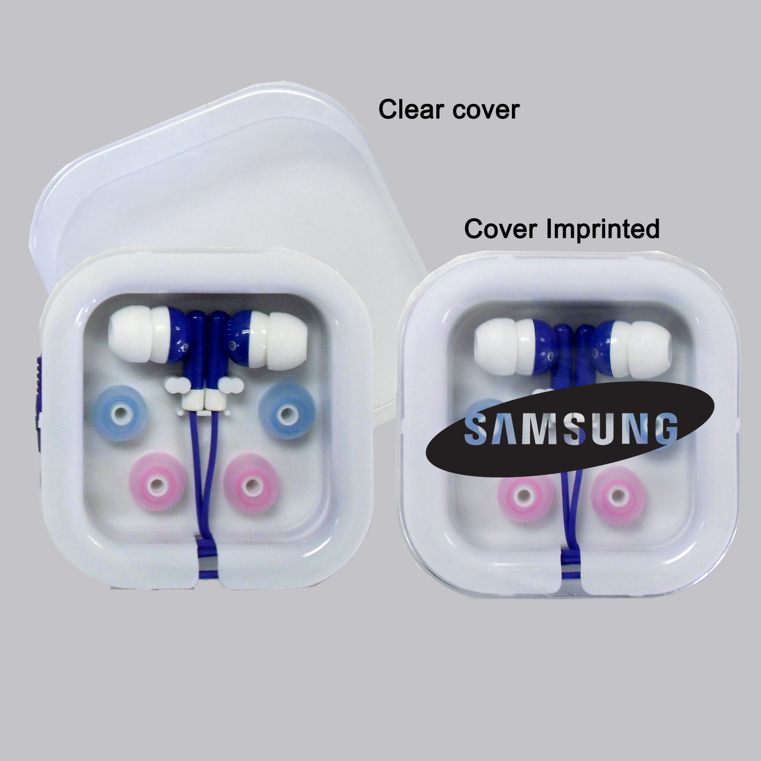 Extended base ear phone s. Get high quality sound from your Ipod, cell phone or other MP3 device with these ear phones. Includes 3 colors of soft silicon interchangeable ear bud covers and a carrying case. Lightweight Headphone with universal adaptor...Cord length 50"Plugs into all audio devices that use the industry standard audio plug. Works in computers, smart phones, and other audio devices. Perfect for lectures, schools, hospital beds, tradeshows, airline and travel, music promotions and other events. |
