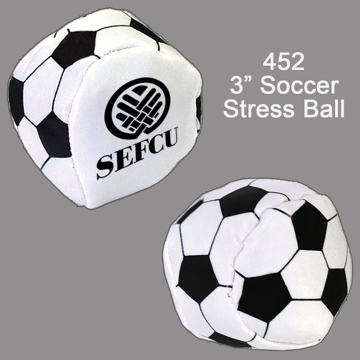 Associate your name with their favorite sport... Made from deluxe PU leather, this attractive 3" stress reliever ball with soccer ball design is soft and squeezable...Great for relieving mental tension in your body, increase wrist strength, and soothe the mind.