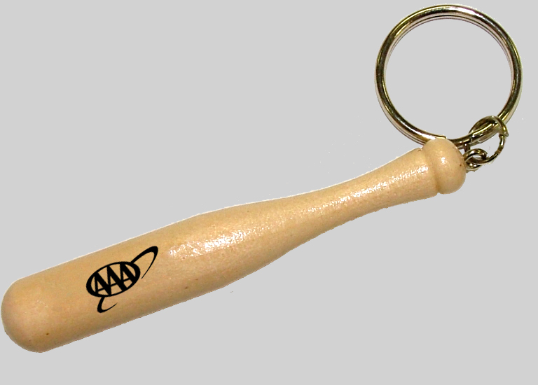 Key holder with miniature 3" authentic wooden baseball bat and split ring. Features a delightful bat 3" in length. Bat is made from real wood. Imprint will be placed directly on bat. Perfect for baseball and other events. |