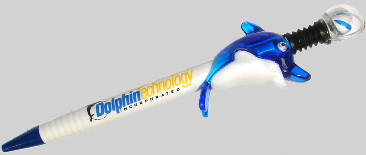 | Elegant Dolphin Shape Ballpoint Pen With Ball In Clear Capsule...Perfect For Promotions Related To Conservation, Hotels, Sea Parks, Aquariums, Ocean, Diving Schools, Sailing Schools & Yacht Clubs and more...Color Blue & White As Shown...Writes In Black Ink. Approximate Size 6 "...Eco friendly, made from 100% recyclable materials. |