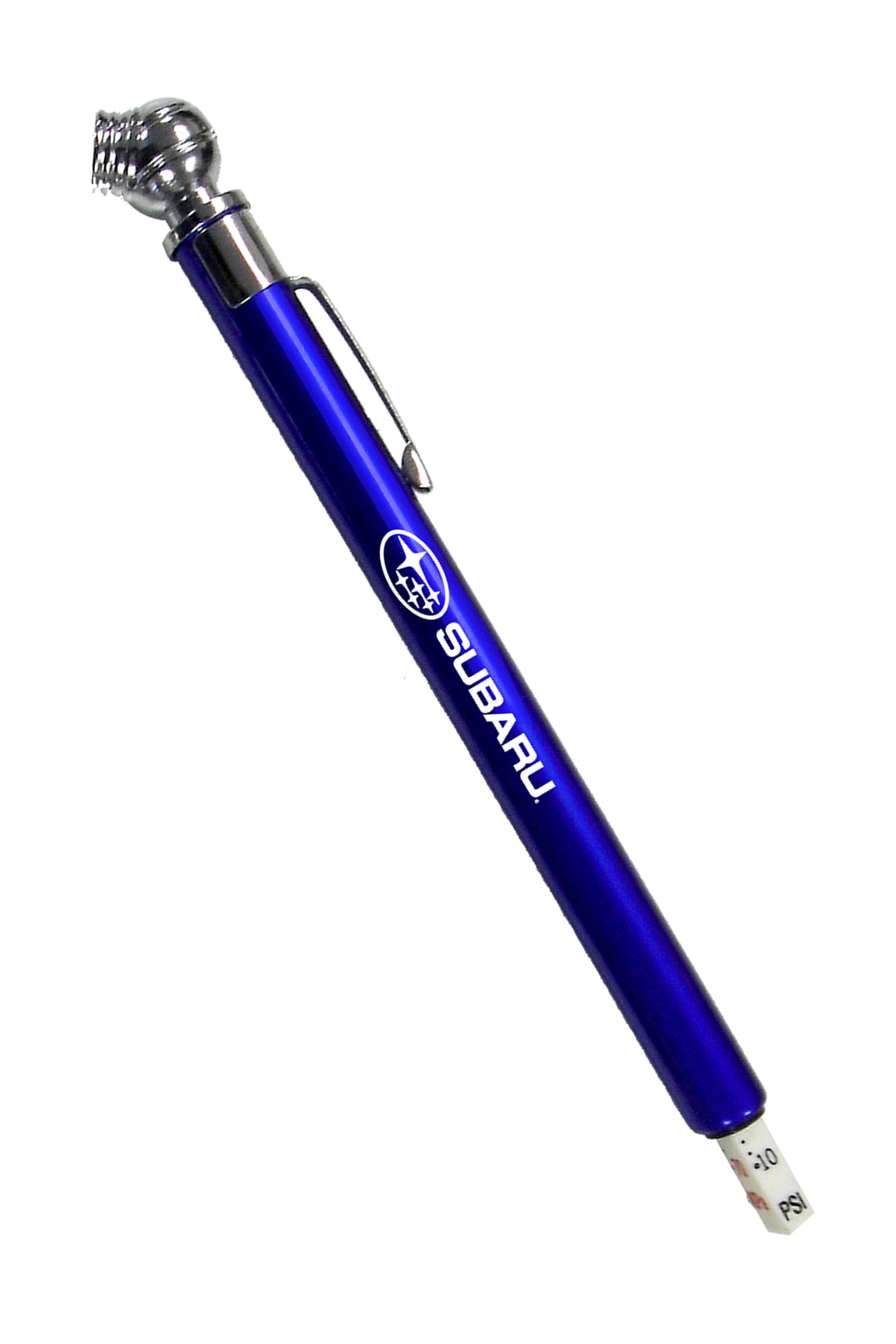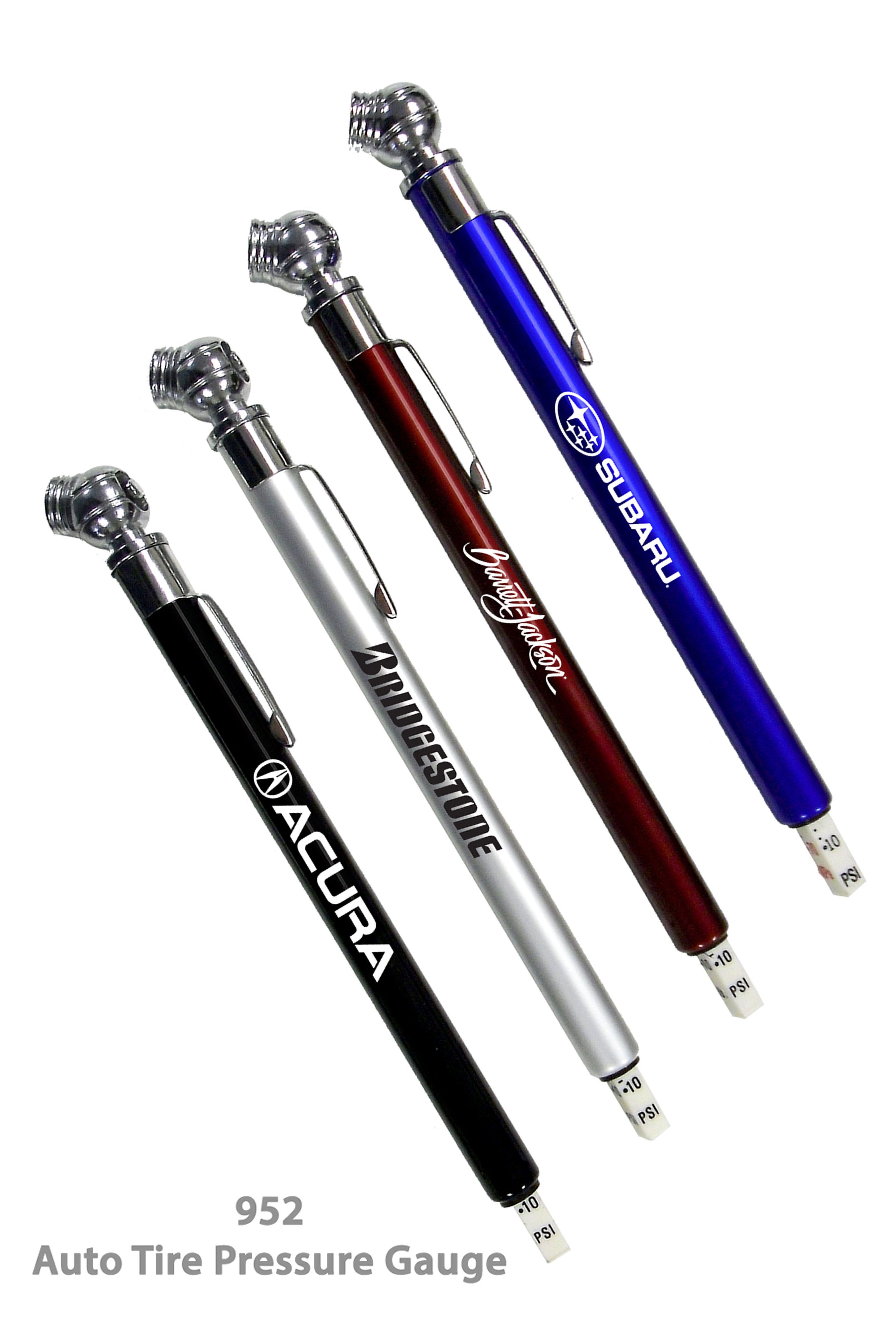 Auto Tire Pressure Gauge In Popular Colors... Lustrous Barrel With Chrome Coated Head... Compatible With All Cars And Trucks... Measures Pressure Up to 50 psi - Size 5 1/2" x 3/8" Approximately.