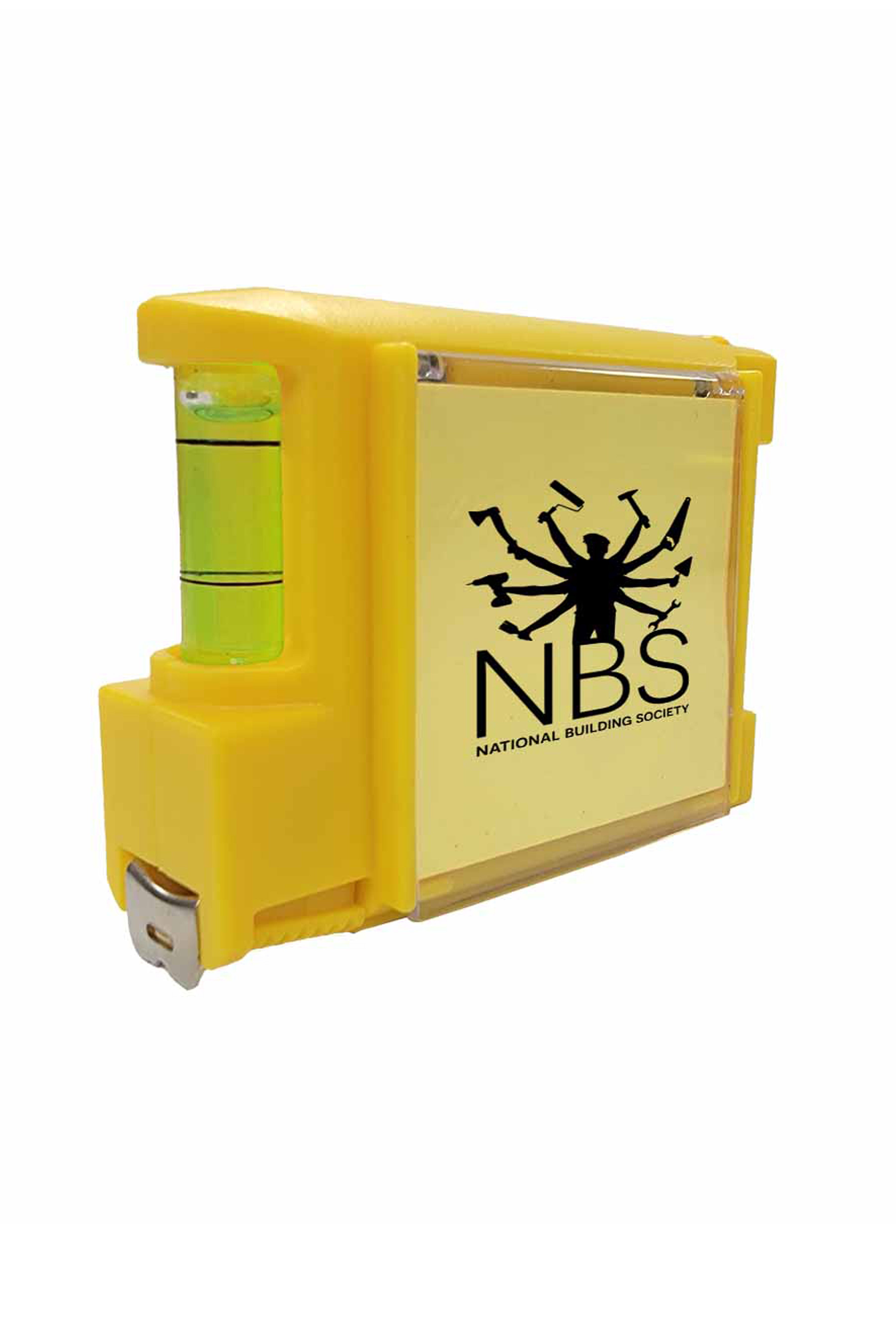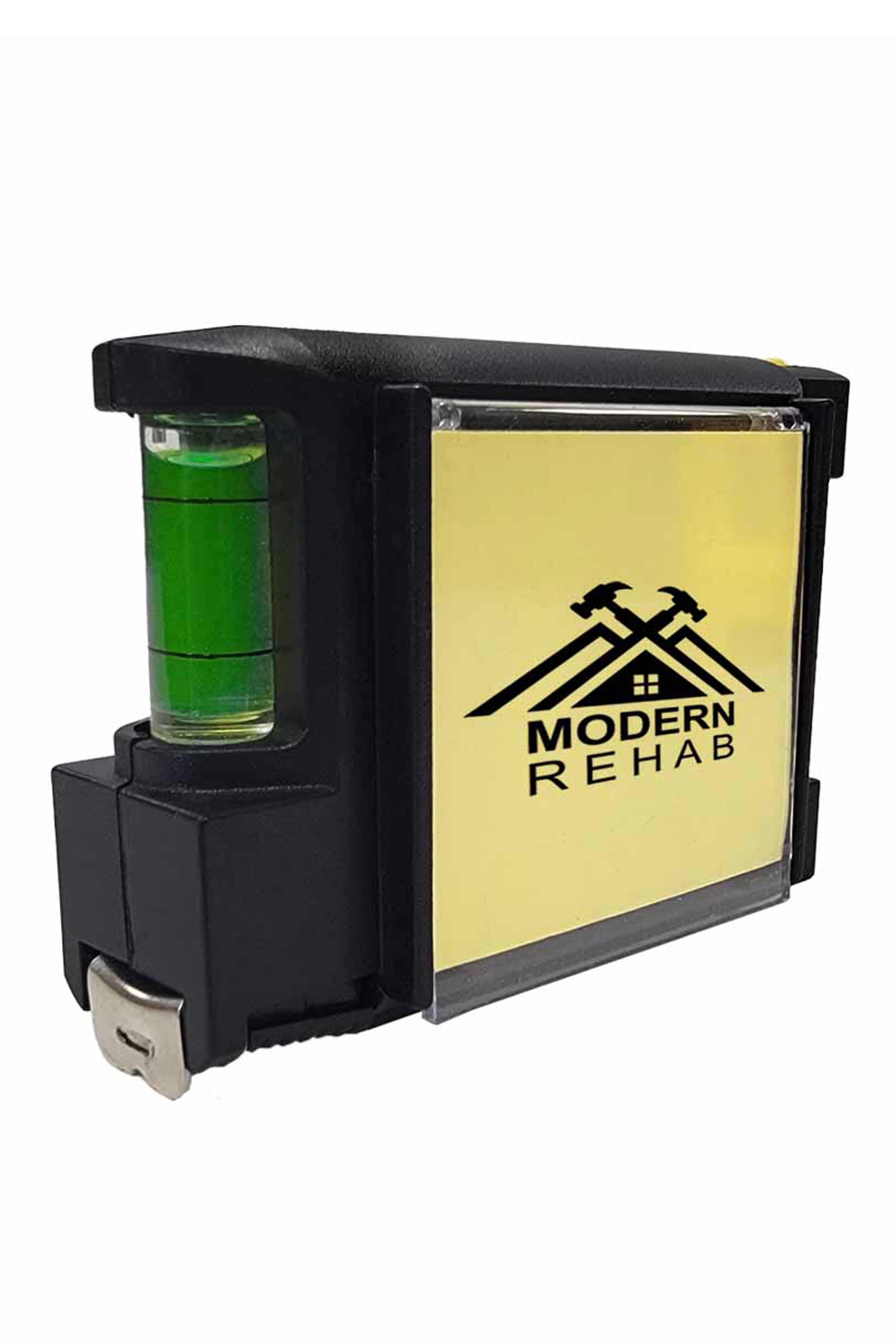 Also included is a mini notepad, a pen, a level and a belt clip... Size is approximately 3" x 2 1/4" x 1"... Available in White, Black, Blue, Orange, Green & Yellow...Perfect For Construction, Photo Framers, Trade Shows, And Other Events.